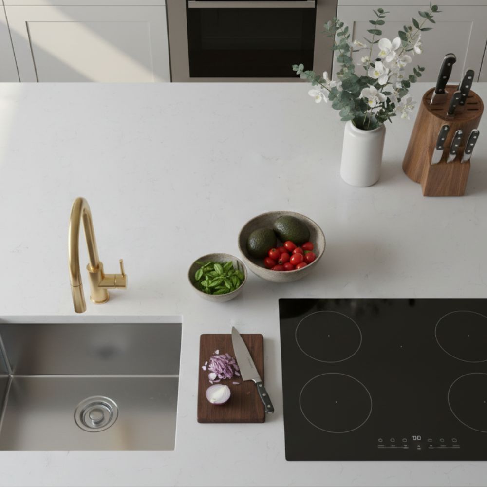 As reliable Carara Moro quartz suppliers in Hyderabad, GL Stone Expo offers a quartz surface that’s easy to work with and visually balanced. Due to the light, non-directional veining, these slabs blend seamlessly with other colors across countertops, backsplashes, and feature walls, creating a professional and high-end finished look that is natural, timeless, and versatile.
